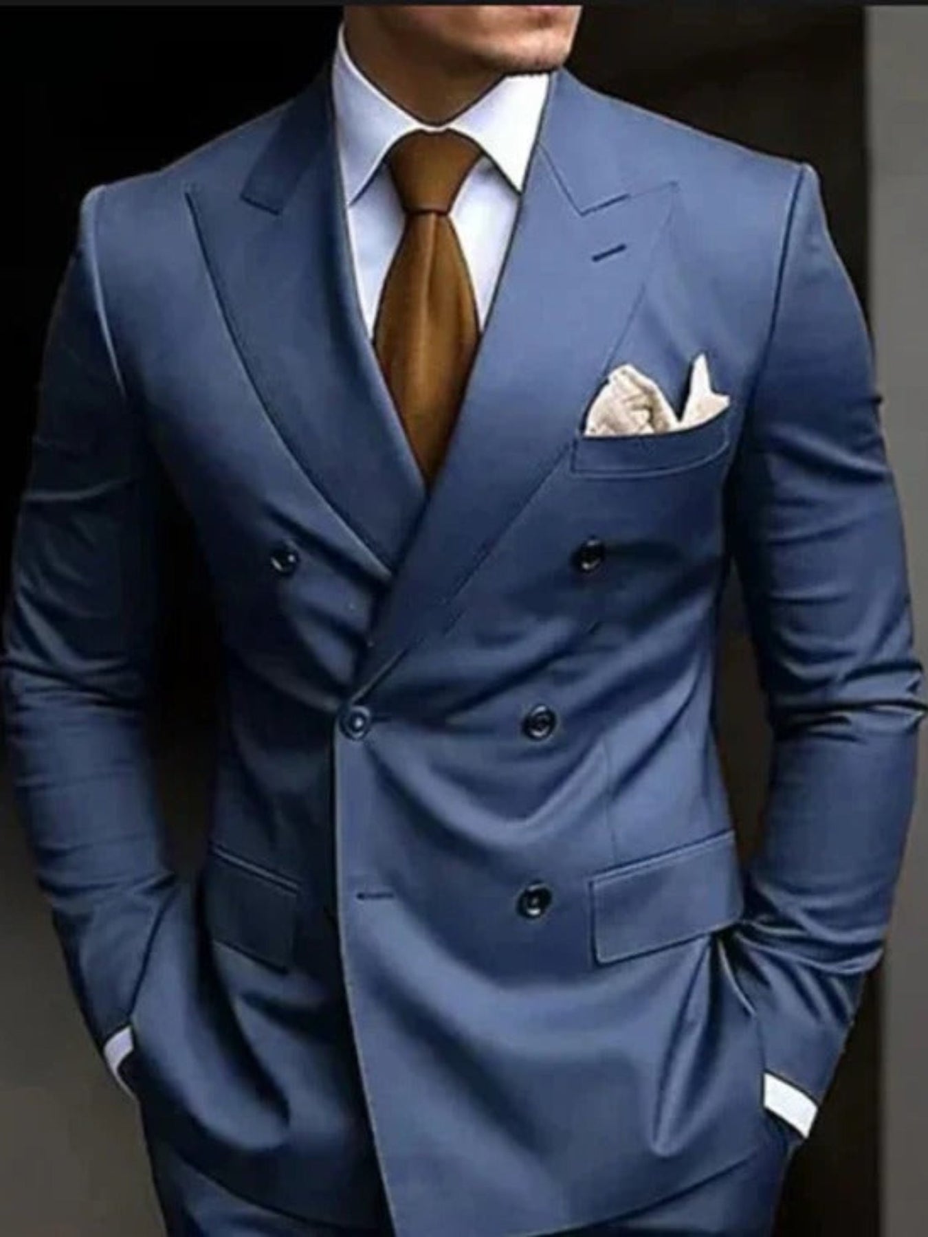 Éloi ist der moderne Anzug für Herren, die bei Hochzeiten oder formellen Anlässen mit Stil und Selbstbewusstsein auftreten möchten. Mit seinem eleganten Zweireiher-Schnitt, satten Farben und einer raffinierten Silhouette strahlt dieser Anzug pure Klasse aus – perfekt für den Mann, der Eindruck hinterlassen will.
