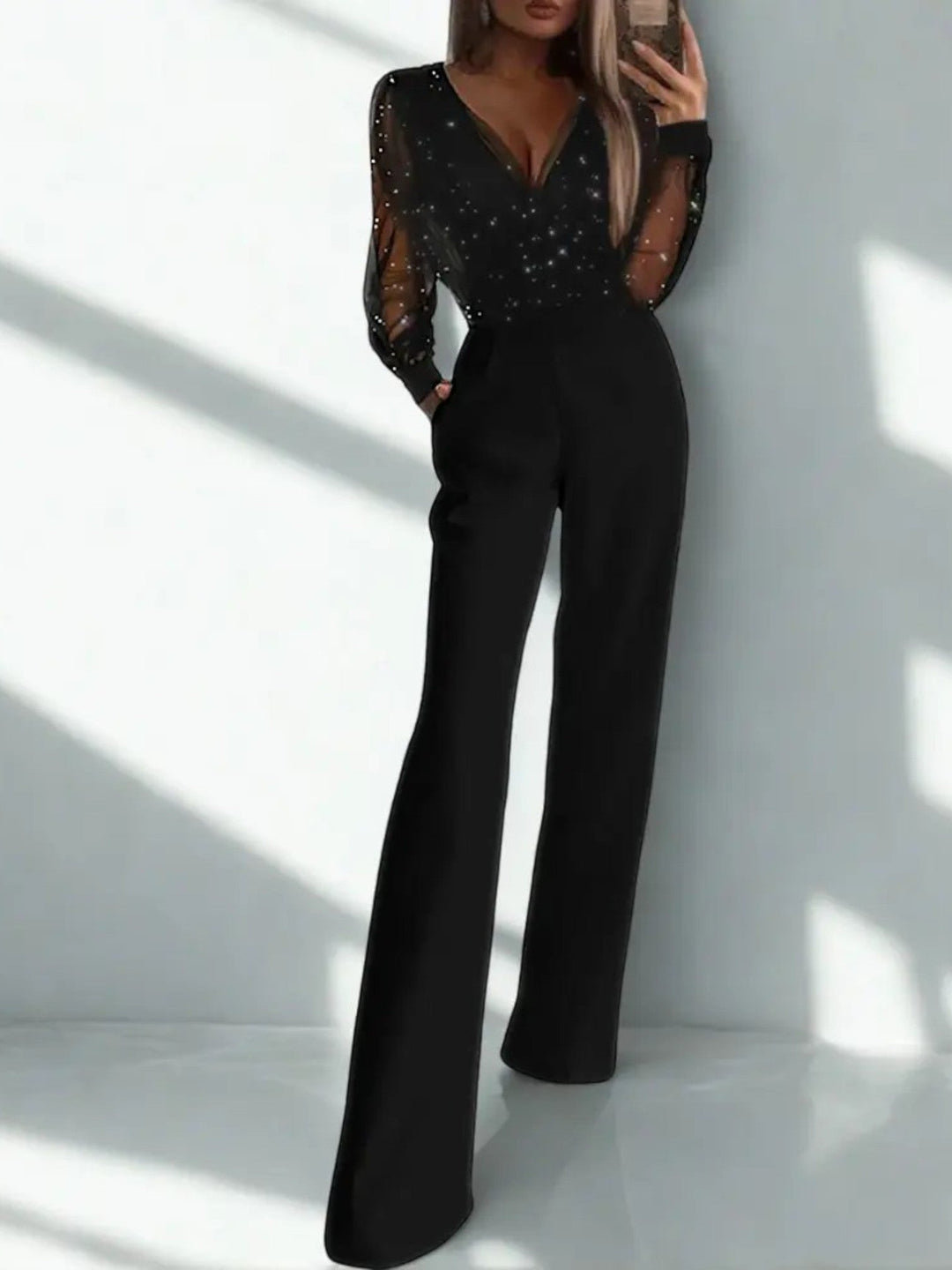 Vivienne | Langärmeliger Jumpsuit Mit V-ausschnitt Für Damen