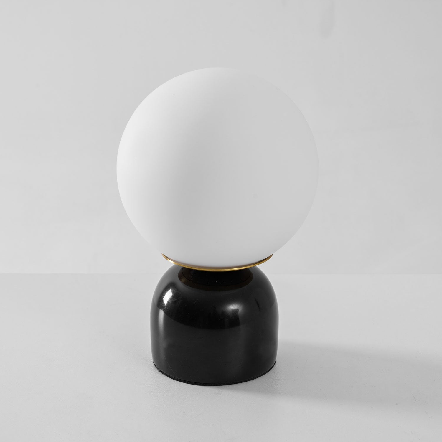 Minimalistische Nachttischlampe mit Glaskugelschirm