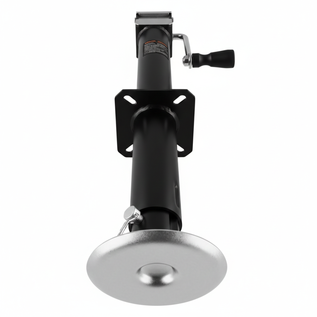 Stow Position Rotation: Swivel mount rotates the jack parallel to the trailer tongue for towing clearance.